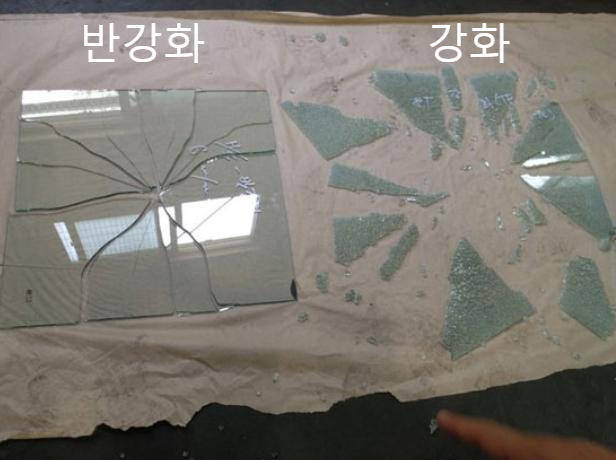 이런 단점을 보완한 유리가 반강화 유리이다.(배강도유리)
